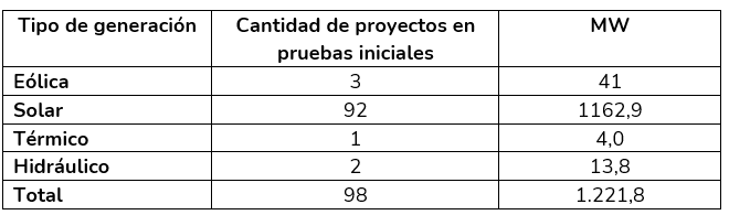 Proyectos de generación en pruebas iniciales
