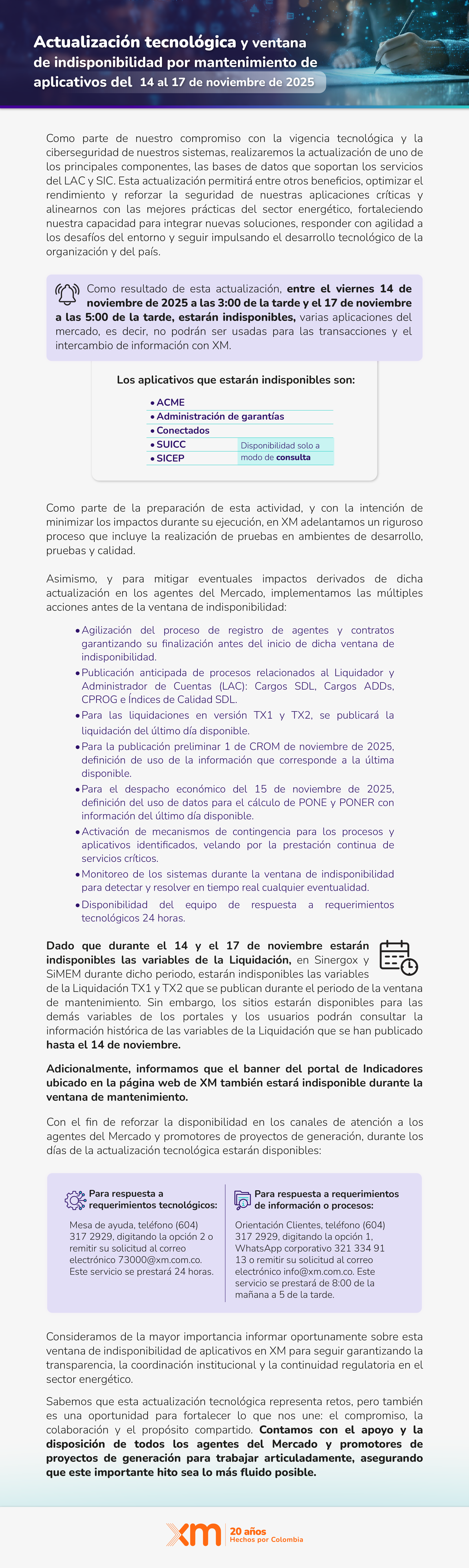 Actualización tecnológica y ventana de indisponibilidad por mantenimiento de aplicativos del 14 al 17 de noviembre de 2025