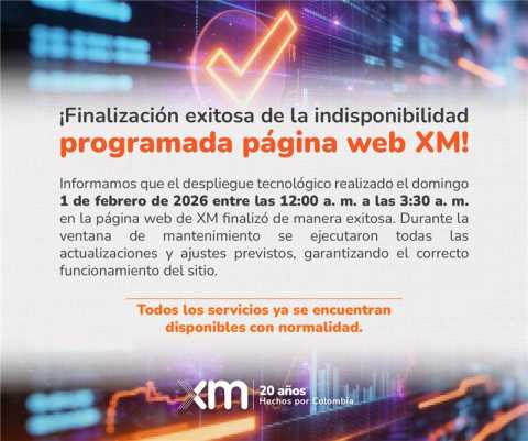 ¡Finalización exitosa de la indisponibilidad programada página web XM!