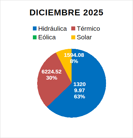 Con lo anterior, al 31 de diciembre de 2025 la matriz de generación del SIN tiene los siguientes porcentajes de participación por tecnología: