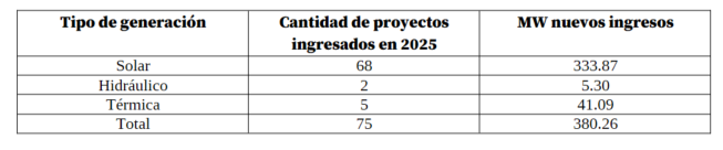 En 2025 ingresaron 75 proyectos de generación con un total de 380.26 MW. En la siguiente imagen se muestra su ubicación.