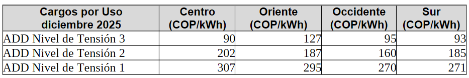 3. Cargos ADDs para los Niveles de Tensión 1, 2 y 3