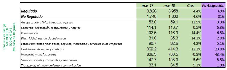 “La demanda de energía ha crecido durante el último año. Específicamente en marzo de 2018 se dio un crecimiento muy parejo en los dos 2 tipos de consumidores (regulado y no regulado).