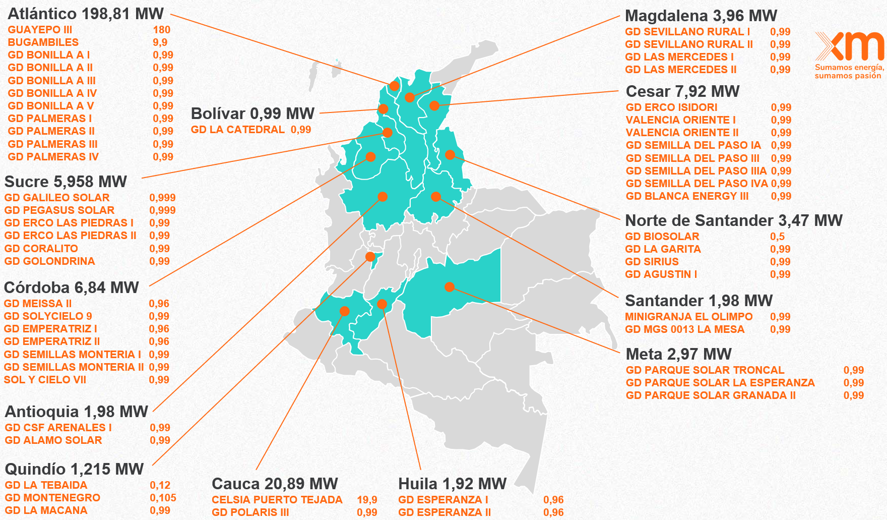 XM, en su rol de operador del Sistema, continúa trabajando en la diversificación y transformación energética de la matriz de generación de energía eléctrica, la cual contó con una capacidad efectiva neta de 21.287 MW a corte del 31 de marzo de 2026, en donde el 8.7 % proviene de fuentes de energía solar.