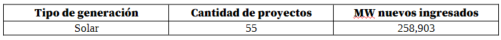 Durante el primer trimestre de 2026, se declararon en operación comercial 2 proyectos de transmisión y 55 proyectos de generación, de los cuales 52 corresponden a generación distribuida, 1 autogenerador, 1 planta solar no despachada centralmente y la planta solar despachada centralmente GUAYEPO III de 180 MW.