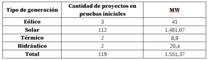 Proyectos de generación en pruebas iniciales