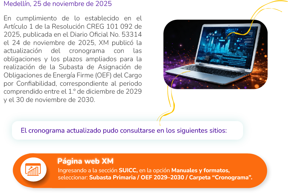 Actualización del cronograma de la subasta OEF del Cargo por Confiabilidad 2029-2030