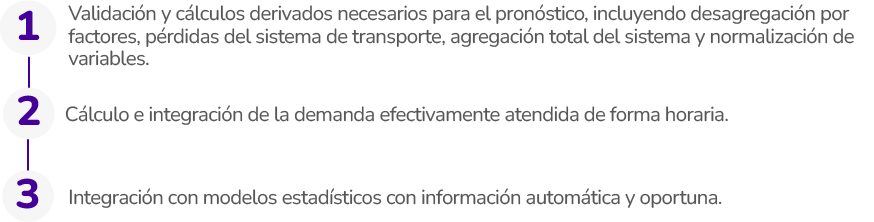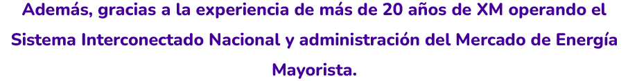 Esta solución tecnológica integra la información proveniente de los agentes del Mercado de Energía Mayorista, incorporando herramientas tecnológicas a través de analítica avanzada, pronósticos colaborativos y notificaciones dinámicas que permiten, entre otros beneficios: