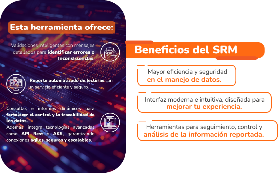 Con la entrada en operación del SRM, iniciamos una etapa de monitoreo continuo para garantizar su óptimo desempeño y facilitar la adaptación de los usuarios. Nuestro compromiso es asegurar una transición fluida, confiable y segura, cumpliendo los más altos estándares de rendimiento y accesibilidad.